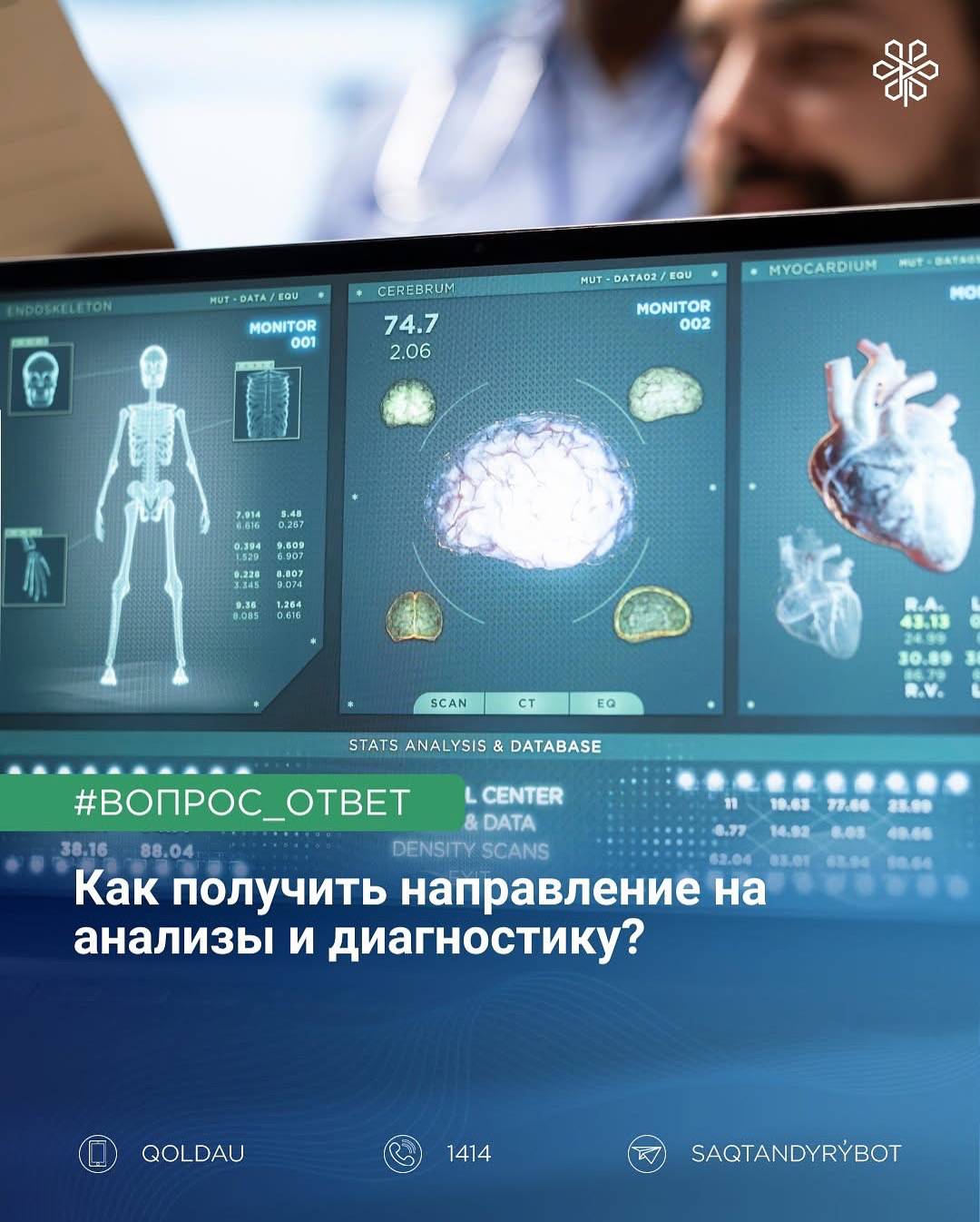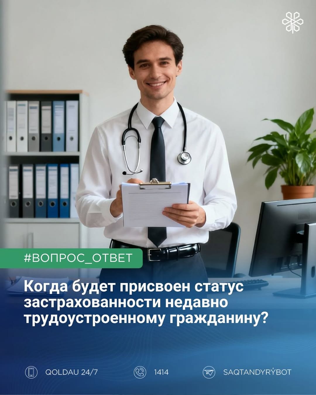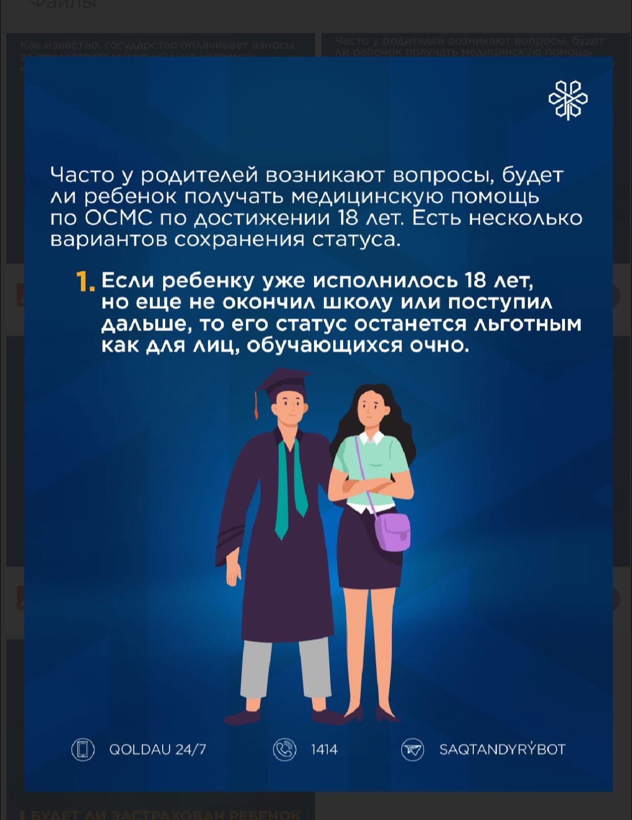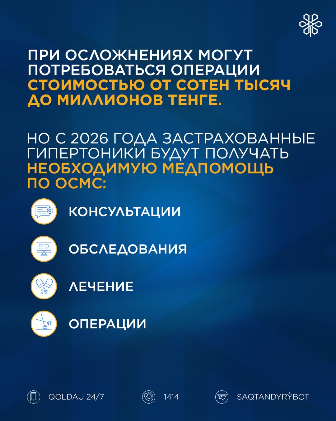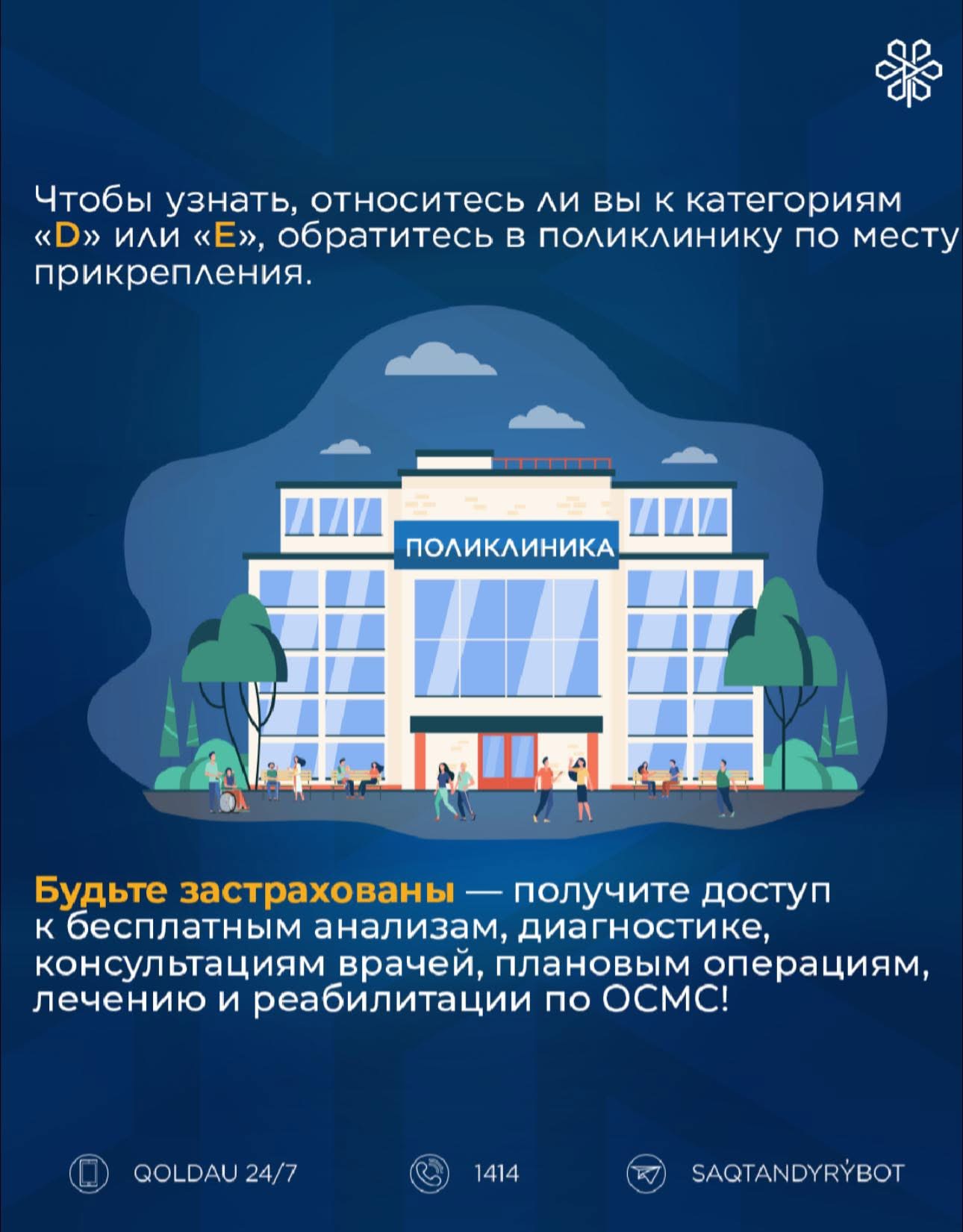 За более подробной информацией вы можете обратиться в Фонд социального медицинского страхования удобным для вас каналом обратной связи: официальный сайт msqory.kz, контакт-центр 1414, мобильное приложение Qoldau 24/7 и SaqtandyrýBot в Telegram.